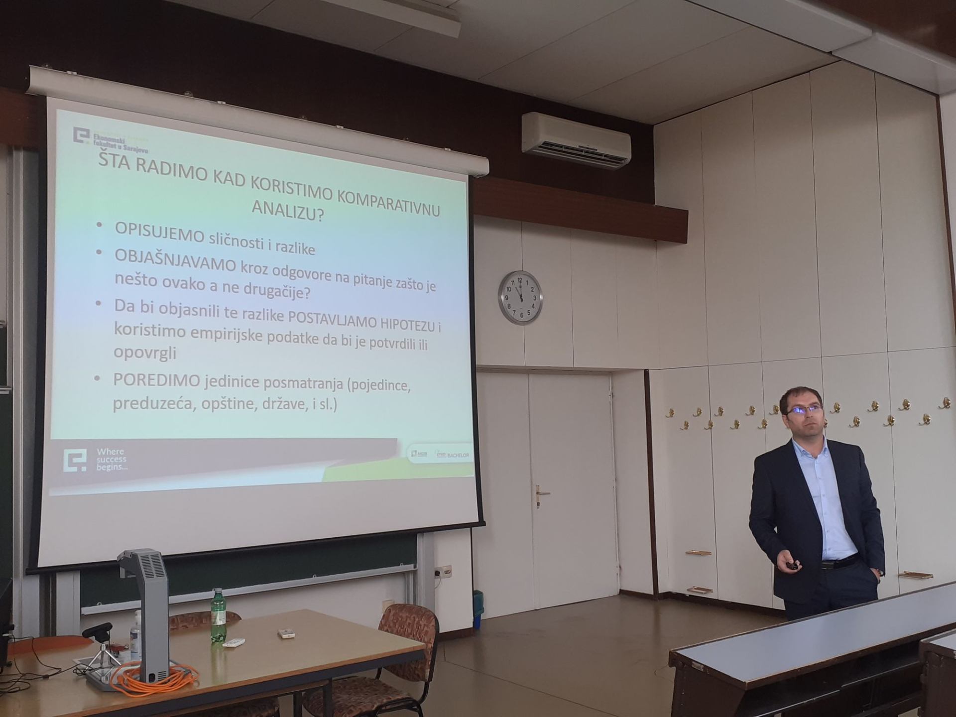 Predavanje je održao dr. sc. Ademir Abdić s Ekonomskog fakulteta Sveučilišta u Sarajevu. Tema predavanja bila je "Komparativna analiza transporta u Hrvatskoj i Bosni i Hercegovini" te "Upotreba i zloupotreba statistike (obmanjujući grafikoni i statistike)". U svojem je izlaganju dr. sc. Abdić prikazao usporedbu prometa roba i putnika u dvije promatrane države u cestovnom, željezničkom i zračnom prijevozu, te je nizom primjera ukazao na važnost statističke pismenosti, kako bi se na temelju statističkih podataka i informacija mogli donijeti što ispravniji i istinitiji zaključci.