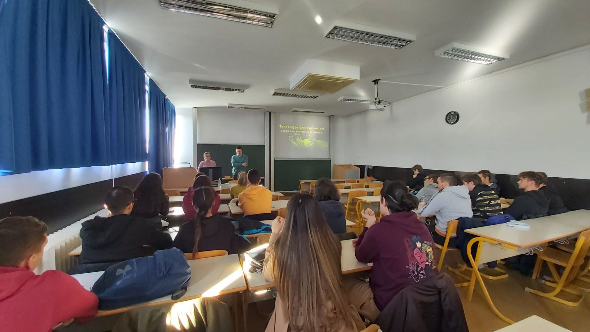 Predavači su studentima objasnili funkcioniranje određenih poslovnih procesa s aspekta njihovih aplikacija. Predstavljen je B2B proces nabave kroz aplikaciju Ensolva. Također je objašnjen značaj i funkcija ERP sustava u poslovanju organizacije na primjeru njihova ERP softvera u oblaku Faros. Studenti su na konkretnim primjerima vidjeli IT rješenja za automatizaciju određenih poslovnih procesa, a predavači su objasnili što poslovni korisnici time dobivaju. Na kraju su uslijedila brojna pitanja studenata na koja su predavači rado odgovorili.
