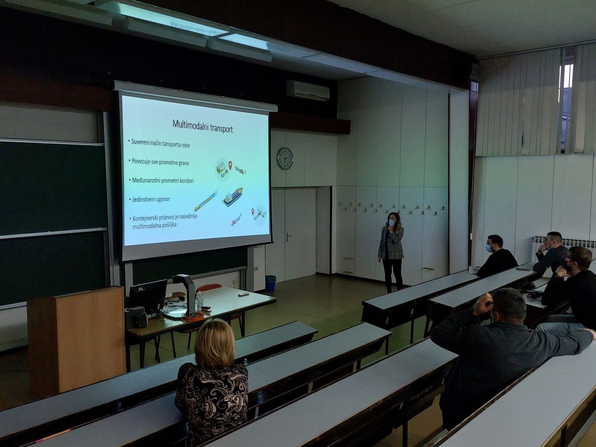 U utorak 8. 3. 2022. Ivana Tomić, struč. spec. ing. traff. održala je javno predavanje na temu „Multimodalni transport na riječkom prometnom pravcu".