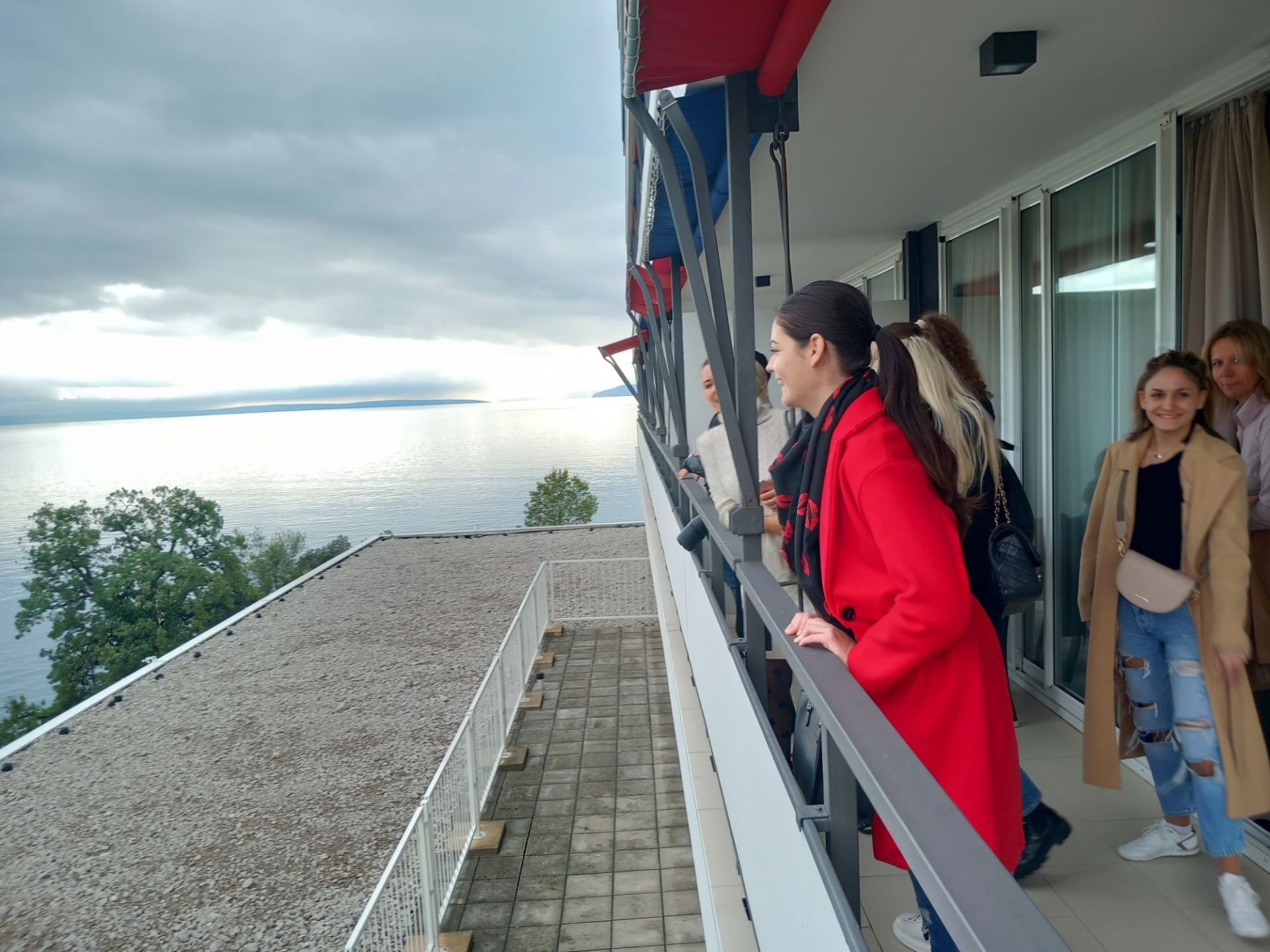 U četvrtak 17. studenoga 2022., u okviru terenske nastave na kolegiju Proizvodni i operativni menadžment, redoviti i izvanredni studenti preddiplomskog stručnog studija Poduzetništvo posjetili su opatijski hotel s 5 zvjezdica, Hotel Ambasador. Liburnia Rivijera Hoteli jedno je od vodećih hrvatskih hotelskih poduzeća koje upravlja Hotelom Ambasador, a prilikom posjete studente je primio generalni menadžer hotela, gospodin Mladen Kapović. Studenti su se upoznali s brojnim aspektima pružanja usluge hotelskog smještaja te operacijskim zahtjevima koji su nužni u postizanju vrhunske kvalitete usluge uz obilazak hotela. Veoma zanimljivo izlaganje gospodina Kapovića praćeno je brojnim pitanjima studenata, koji će iskustvo posjeta iskoristiti za svladavanje ishoda učenja u okviru aktivnosti na kolegiju.