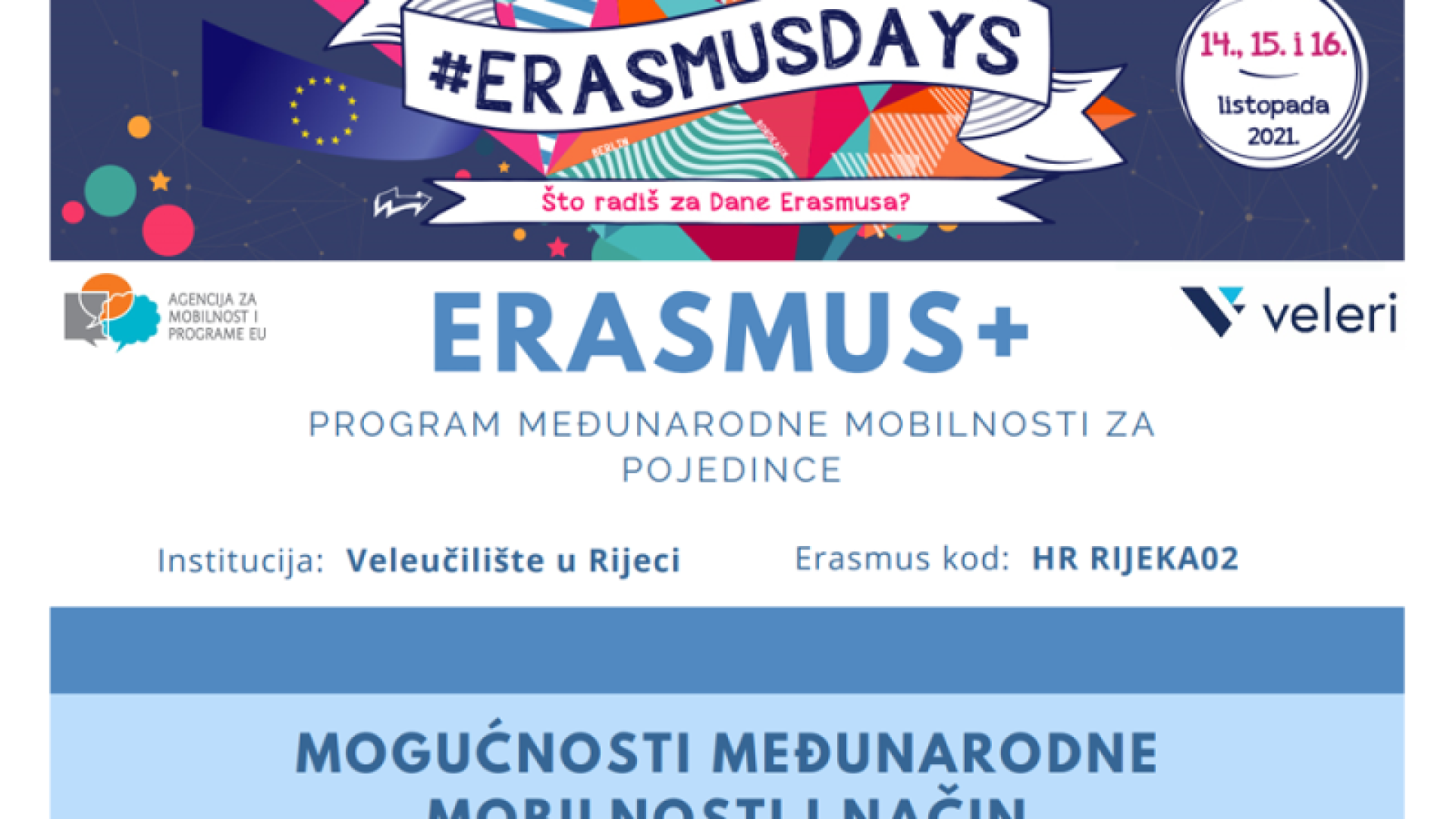 Pridružite nam se na obilježavanju Dana Erasmusa (Erasmus Days 2021) i saznajte više o mogućnostima studiranja i obavljanja stručne prakse u inozemstvu u okviru programa mobilnosti!