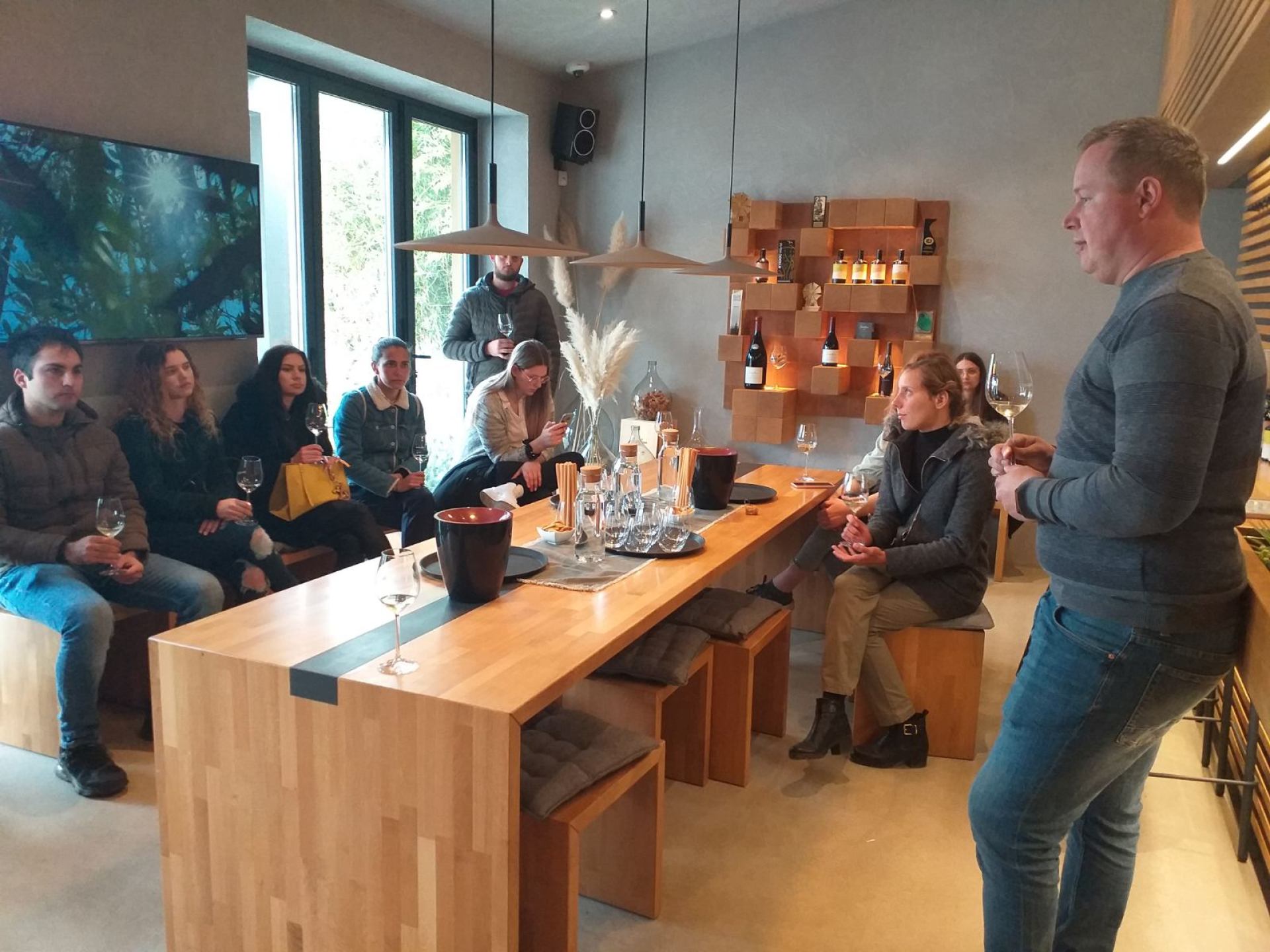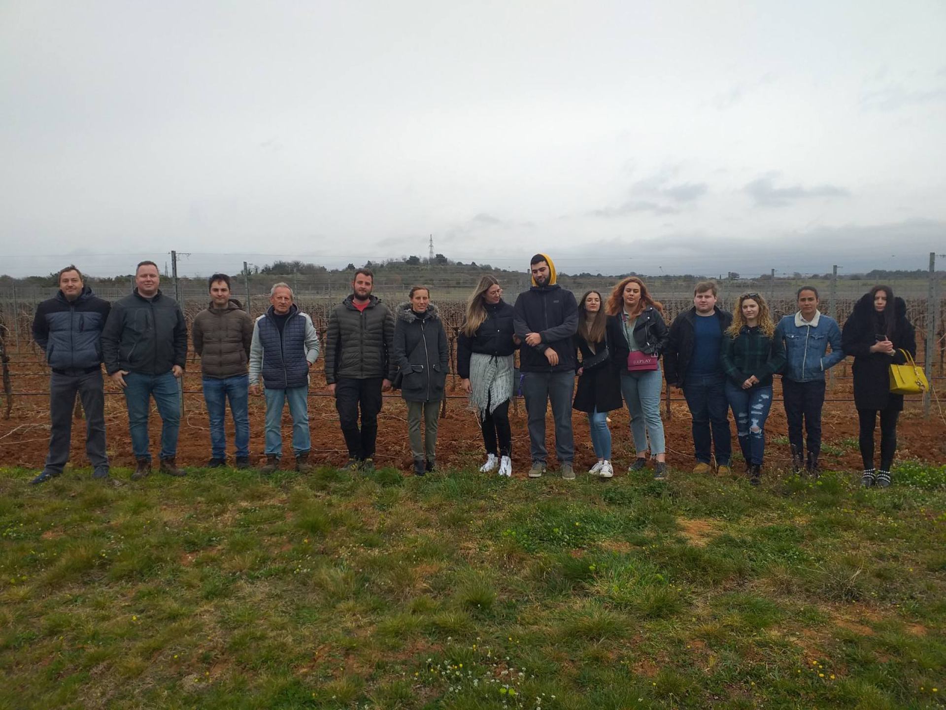Studenti preddiplomskog stručnog studija Vinarstvo 3. godine i studenti specijalističkog diplomskog stručnog studija Vinarstvo u okviru kolegija Praktični rad u vinarstvu II i Specifične tehnologije u vinarstvu posjetili su 30. 3. 2022. vinograde, vinariju i uljaru Agroprodukt.