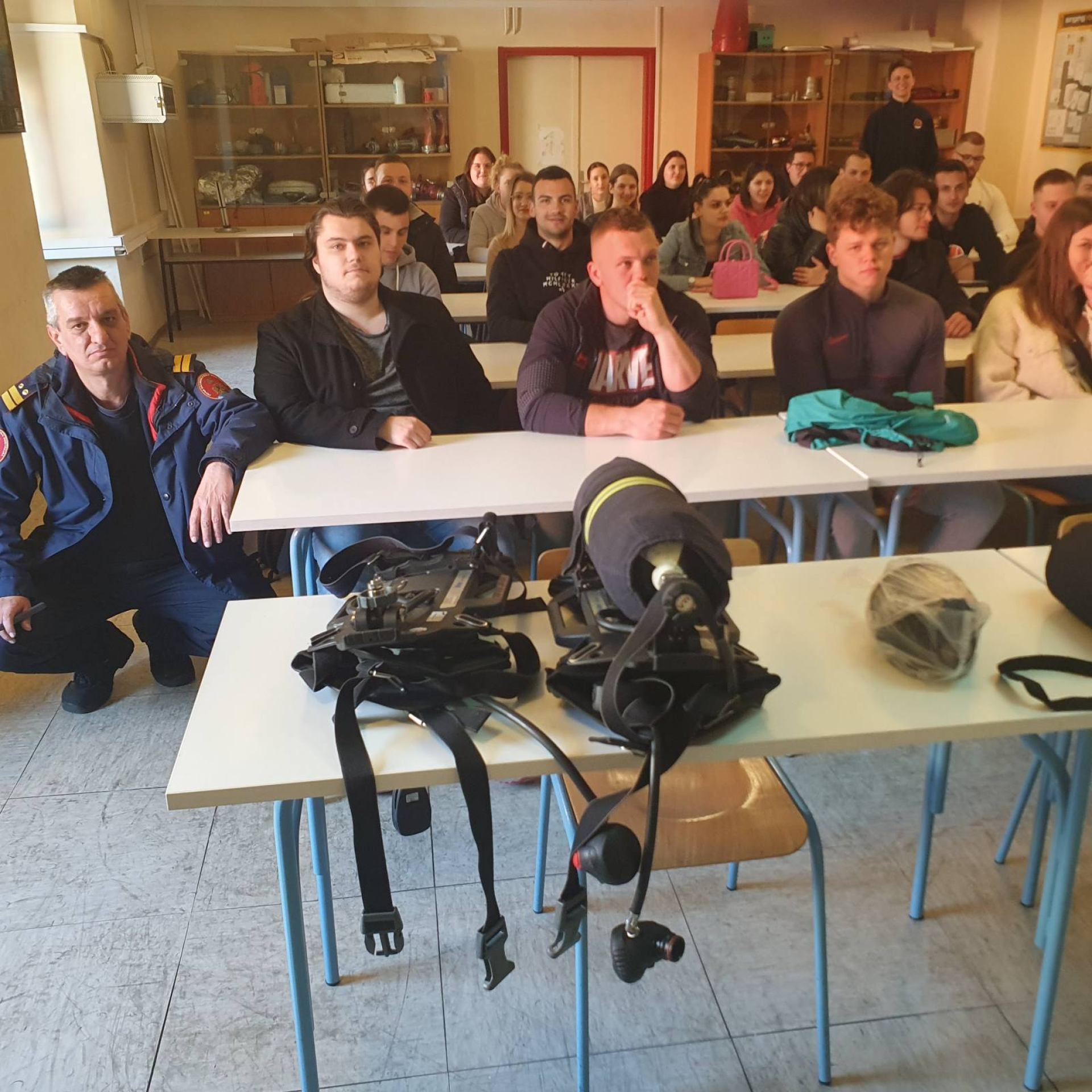 Svrha terenske nastave bila je upoznavanje studenata s osobnom zaštitnom opremom vatrogasaca (vatrogasnim vozilom, vatrogasnim intervencijskim odijelima, dišnim aparatima i ostalom zaštitom opremom pripadnika vatrogasne postrojbe).