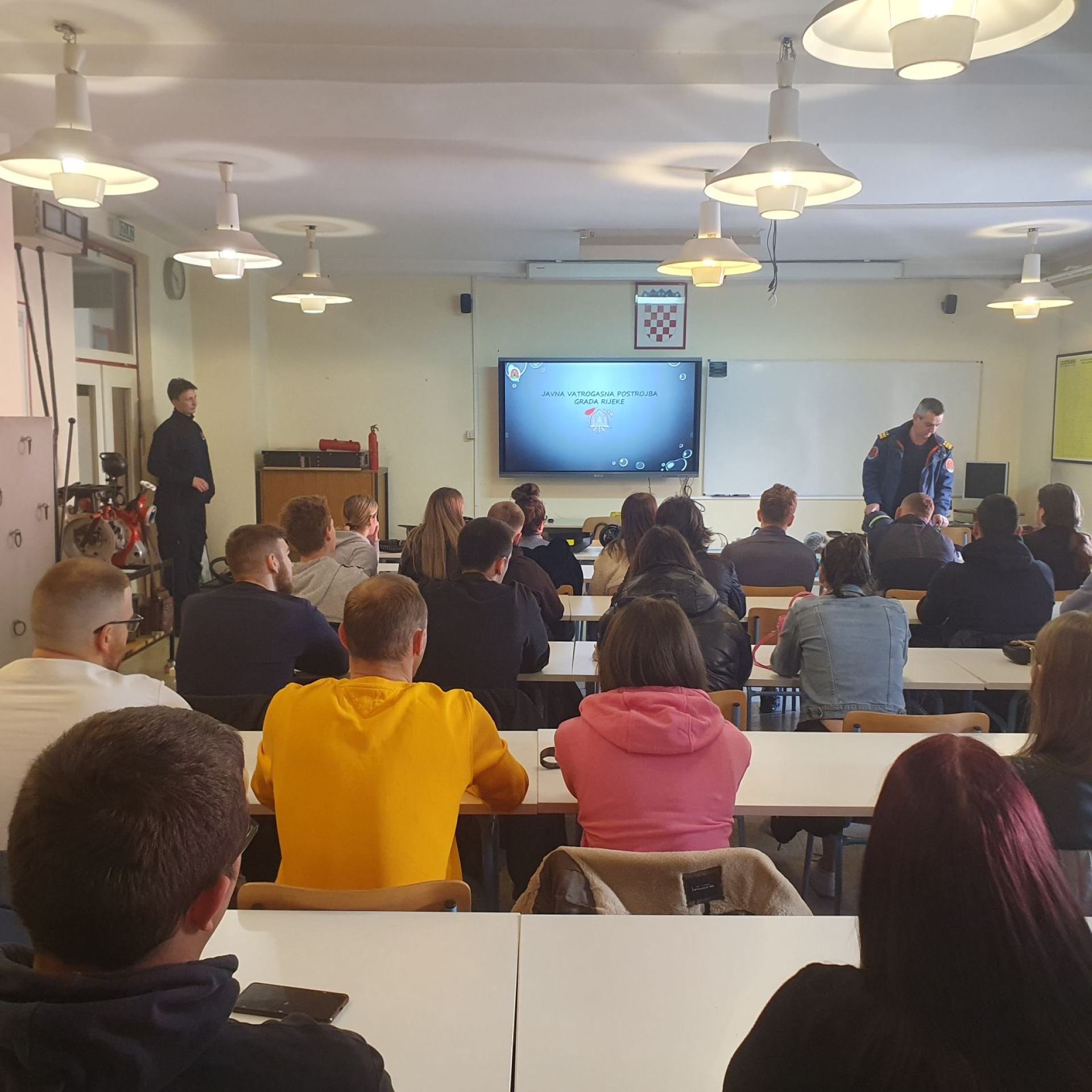 U okviru kolegija Osobna zaštitna sredstva i oprema studenti stručnog prijediplomskog studija Sigurnost na radu 5. travnja 2023. posjetili su Javnu vatrogasnu postrojbu Grada Rijeke u pratnji nastavnika Mensura Ferhatovića, v. predavač.