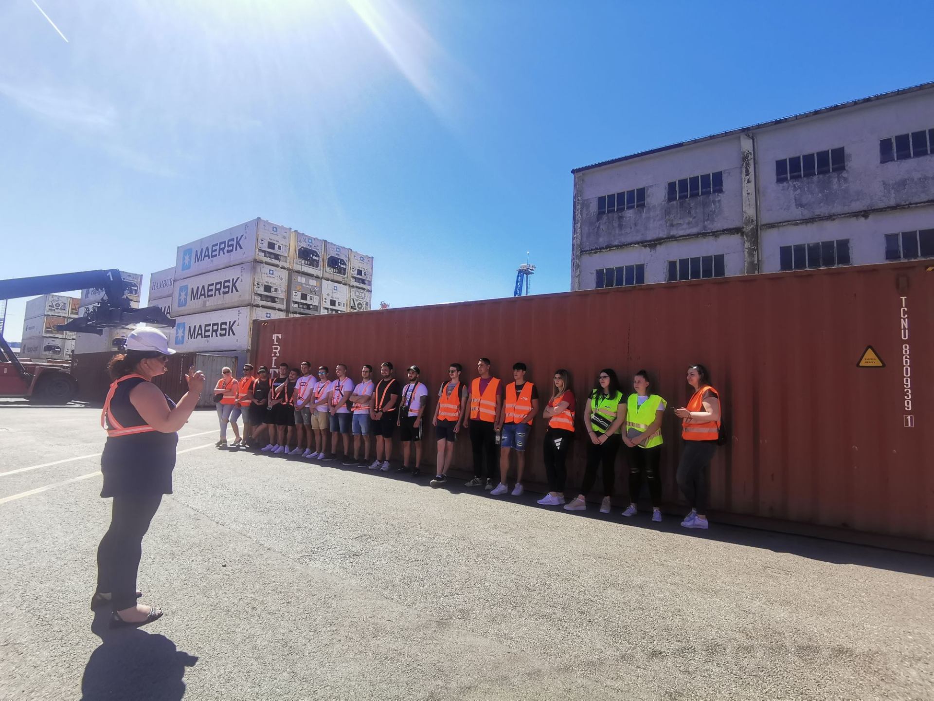 Dana 19. 5. 2022. u pratnji Erike Gržin, v. pred i Maje Šupuković, asistent, a u sklopu kolegija Suvremeni prometni sustavi, studenti 1. godine preddiplomskog stručnog studija Cestovni promet posjetili su Kontejnerski terminal Jadranska vrata. Kroz terensku nastavu studenti su imali priliku razgledati različite vrste kontejnera i upoznati se s procesom manipulacije kontejnera obalnim i portalnim dizalicama te autodizalicama. Vidjeli su postupak iskrcaja kontejnera iz broda te utovar na vozila unutarnjeg transporta AGCT-a - MAFI. Nakon obilaska terminala, studenti su obišli operativni centar, tzv. „mozak" terminala iz kojeg se upravlja svim procesima na terminalu.